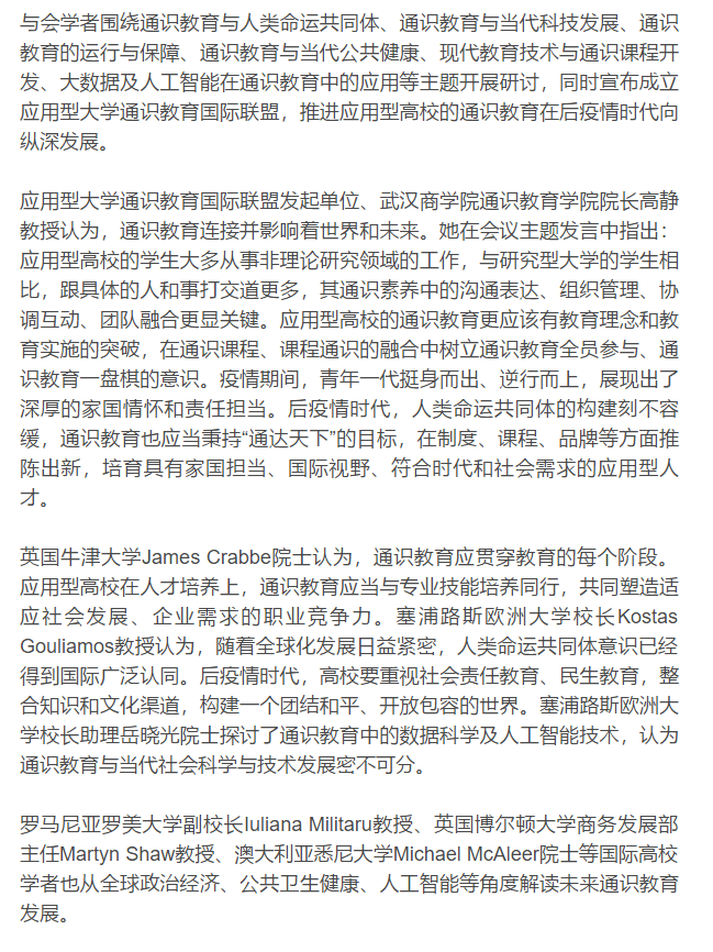助推国际通识教育纵深发展 应用型大学通识教育国际联盟成立(七)