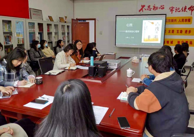 童索凡老师分享费孝通先生所著的《乡土中国》,为大家阐述了“三里不同俗,十里不同音”的中国乡土结构本色;李静老师向大家推荐牛津通识读本《中国文学》,其以六万多字的篇幅呈现中国文学各体的面貌,勾勒中国文学发展的线索,突显中国文学文化的特色;胡西斌老师带来《新媒体用户研究》,从科技的视野出发向大家科普“赛博格化”这一有趣概念;马玉老师结合自身专业推荐《心流——最优体验心理学》一书,阐述到“幸福是一种能力而不是一种状态,我们需培养自己感知幸福的能力。”陈文旋子老师用幽默风趣的语言展示了《沥姐说中国音乐》一书中的精彩篇章,在忙碌之余为老师们带来一丝轻松和愉悦;最后桂子涵老师用行云流水般的语言介绍了《苏东坡传》一书,并传递书中精髓“回首过去,活在当下,展望未来。”