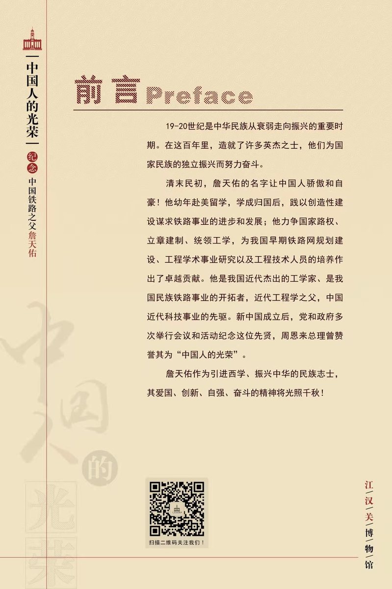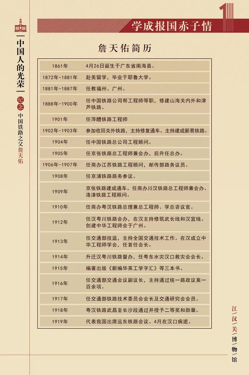 为让同学们感受一代代爱国者艰苦创业的光荣梦想,培养广大学生的爱国主义精神和自强不息意识。4月26日-30日,由我院与江汉关博物馆联合举办的“中国人的光荣—纪念‘中国铁路之父’詹天佑”展览北四门口展出。