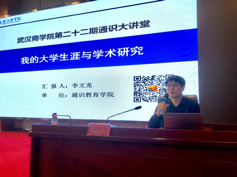 4月27日14时,第二十二期通识大讲堂在武汉商学院图书馆报告厅如期举行。本期主讲人为我院客座教授、华中科技大学博导、青年长江学者李文龙教授,主题为《我的大学生涯与学术研究》。