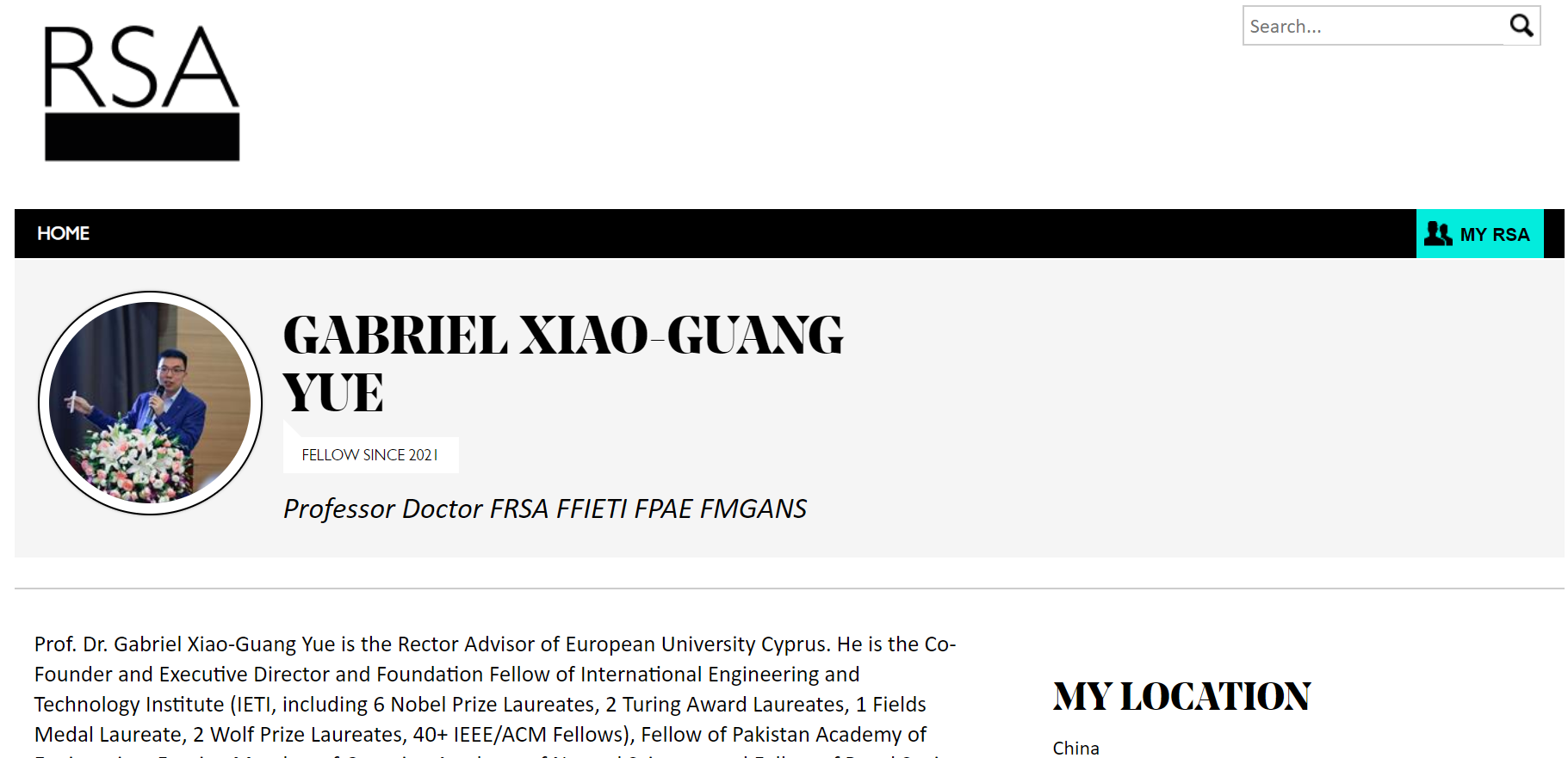 2021年5月6日,经英国皇家艺术学会 (Royal Society of Arts,RSA) 批准,我院特聘教授岳晓光当选为该会会士。