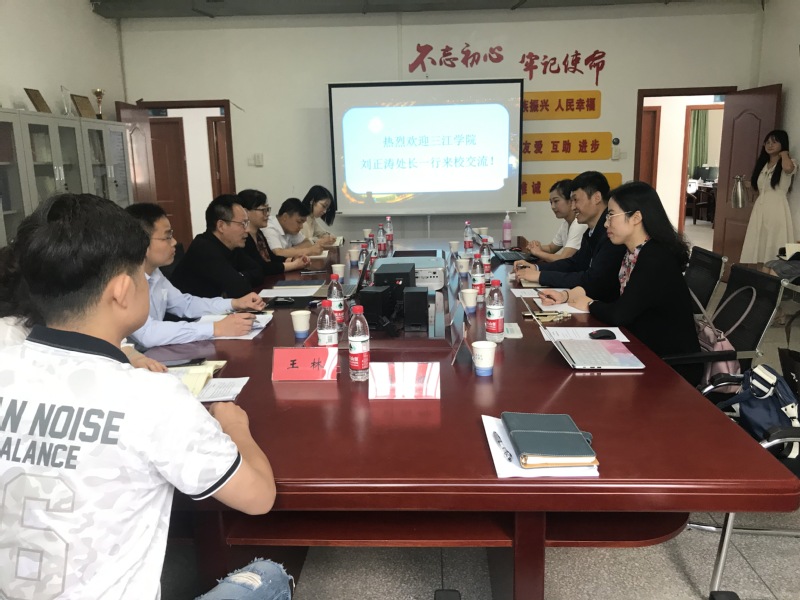 5月7日上午,三江学院教务处处长刘正涛一行4人来我校麻豆精品㊙️国产传媒AV进行调研交流。我校教务处处长罗双燕、教务科科长王泽出席了此次交流座谈会。